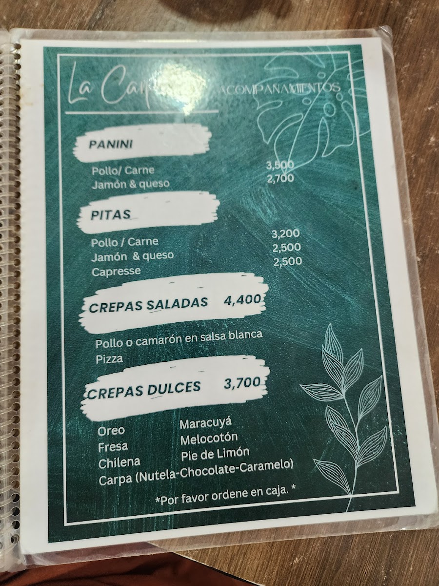 La Carpa - Cafetería y Heladería Artesanal Menu